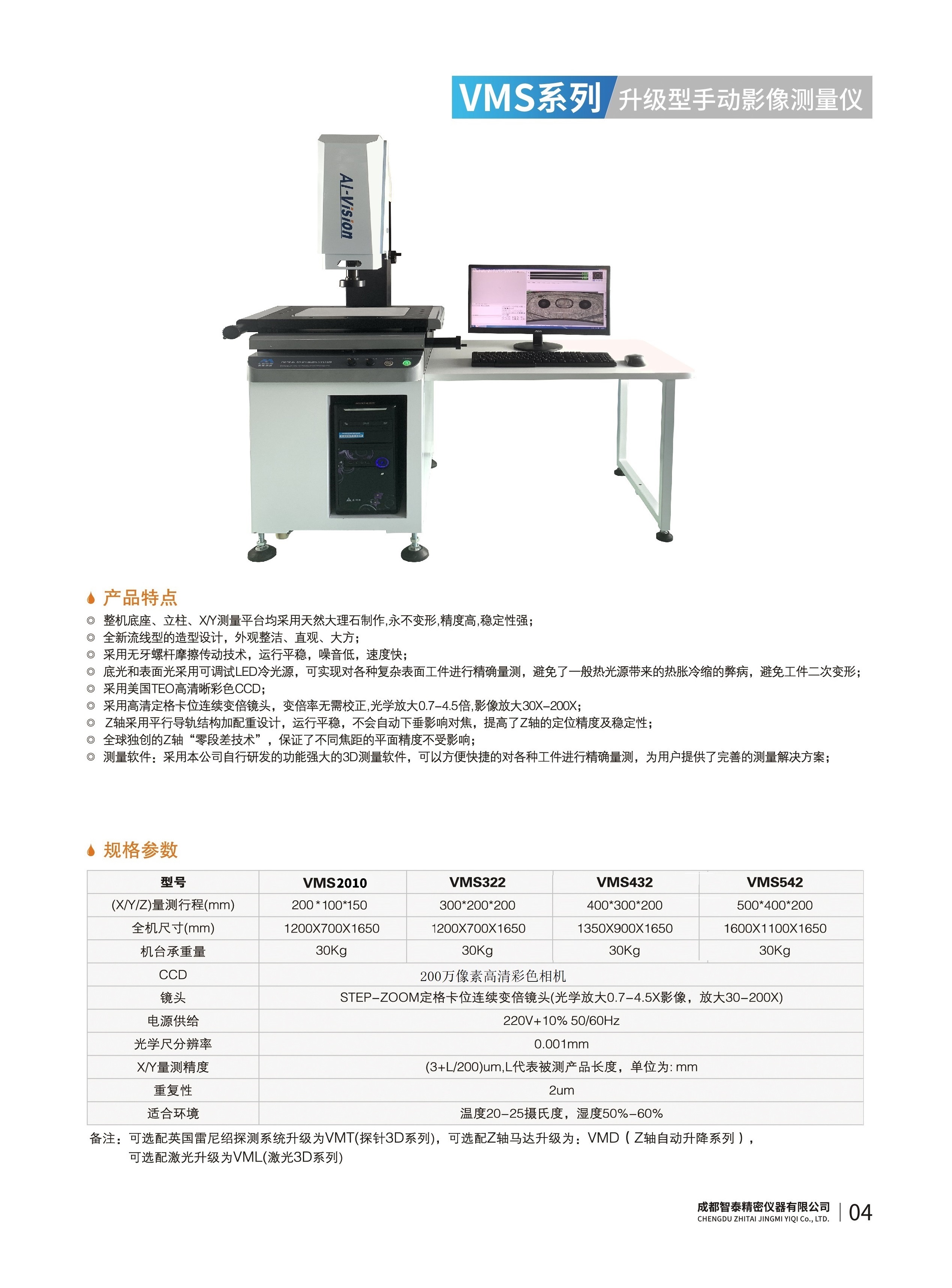 成都智泰精密儀器有限公司專注于精密測量儀器,人工智能,智能制造領(lǐng)域,專業(yè)從事智能視覺自動化檢測解決方案的貿(mào)易型企業(yè)。公司成立于2011年,位于天府之國成都,現(xiàn)有行業(yè)精英十余人,辦公倉儲面積200余平米。 公司主要產(chǎn)品為精密光學影像測量儀,精密輪廓形狀測量儀,精密機器人定位系統(tǒng),精密智能視覺尺寸檢測儀器,精密表面缺陷智能檢測設(shè)備,工業(yè)工程特種機器人。 公司憑借過硬的技術(shù)實力和產(chǎn)品方案,率先進入智能視覺自動化檢測領(lǐng)域,推廣以精密智能視覺自動化檢測為基礎(chǔ)的機器人自動化應(yīng)用,公司不斷整合上下游的資源,擁有巨大的全產(chǎn)業(yè)鏈優(yōu)勢。客戶群體覆蓋了我國精密制造業(yè)的多數(shù)領(lǐng)域,包括航空、航天、軍工、汽車、新能源、光伏、食品,精密電子、精密機械、模具、PCB、LCD、五金、塑膠、醫(yī)療、教育、計量及科研院所等行業(yè)。 公司創(chuàng)新的產(chǎn)品能滿足生產(chǎn)與制造行業(yè)客戶的要求,訓(xùn)練有素的工程師能及時提供多種技術(shù)服務(wù),如解...